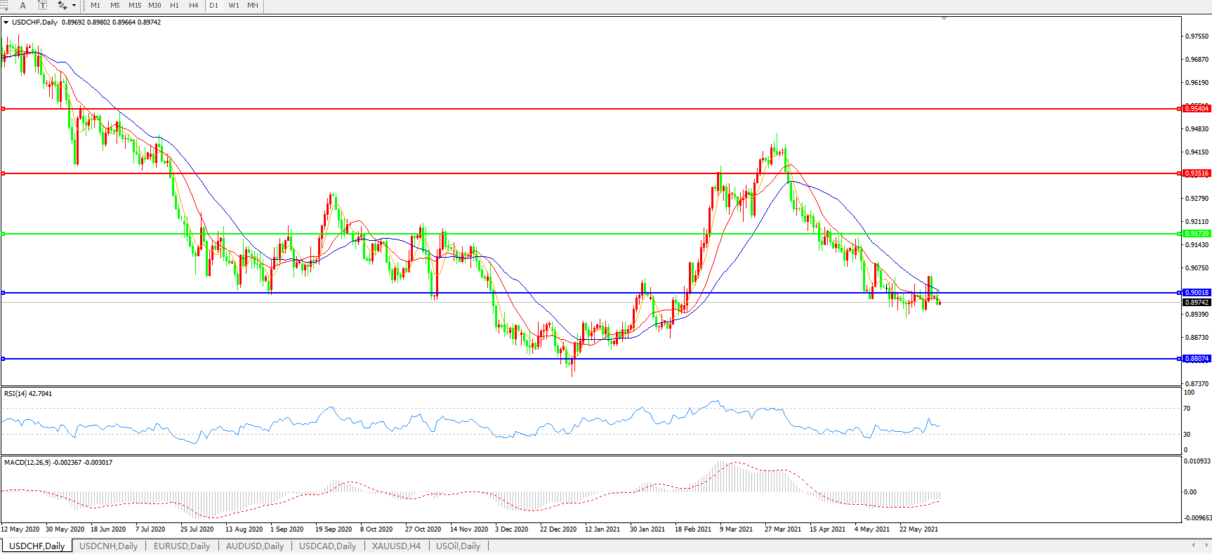 美元空头较为拥挤,美元兑瑞郎持续弱势