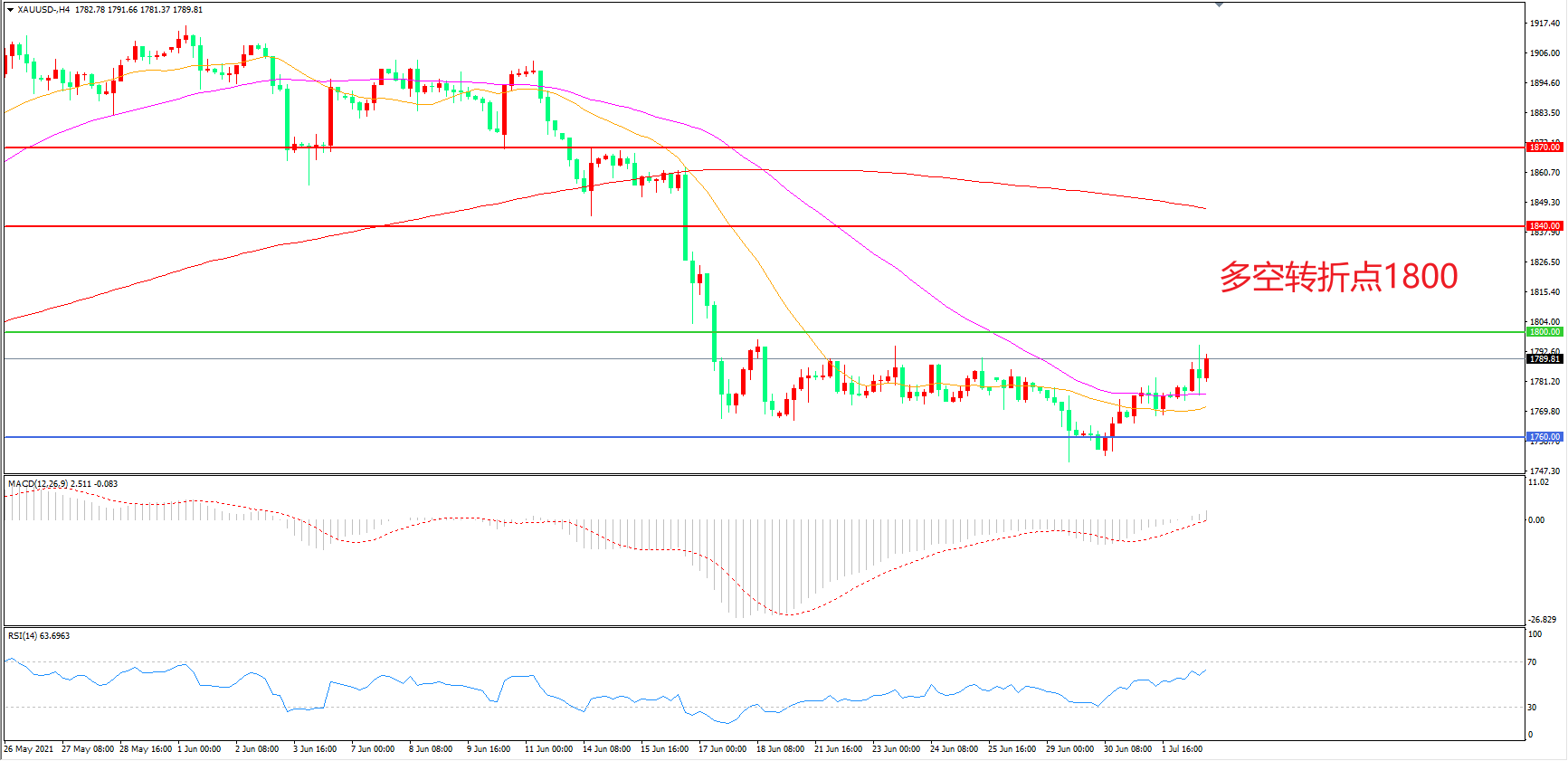 多空转折点:1800.00