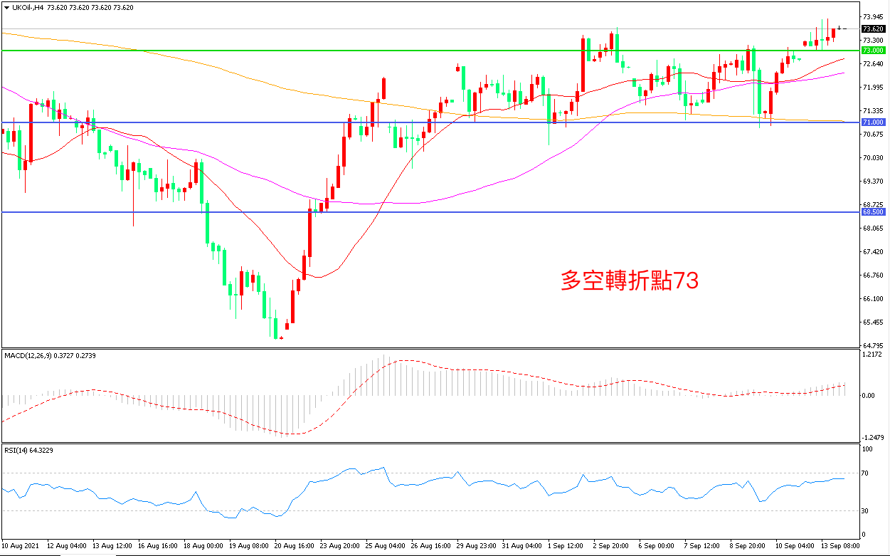 交易策略:在73.00之上看涨,目标75.00 78.00