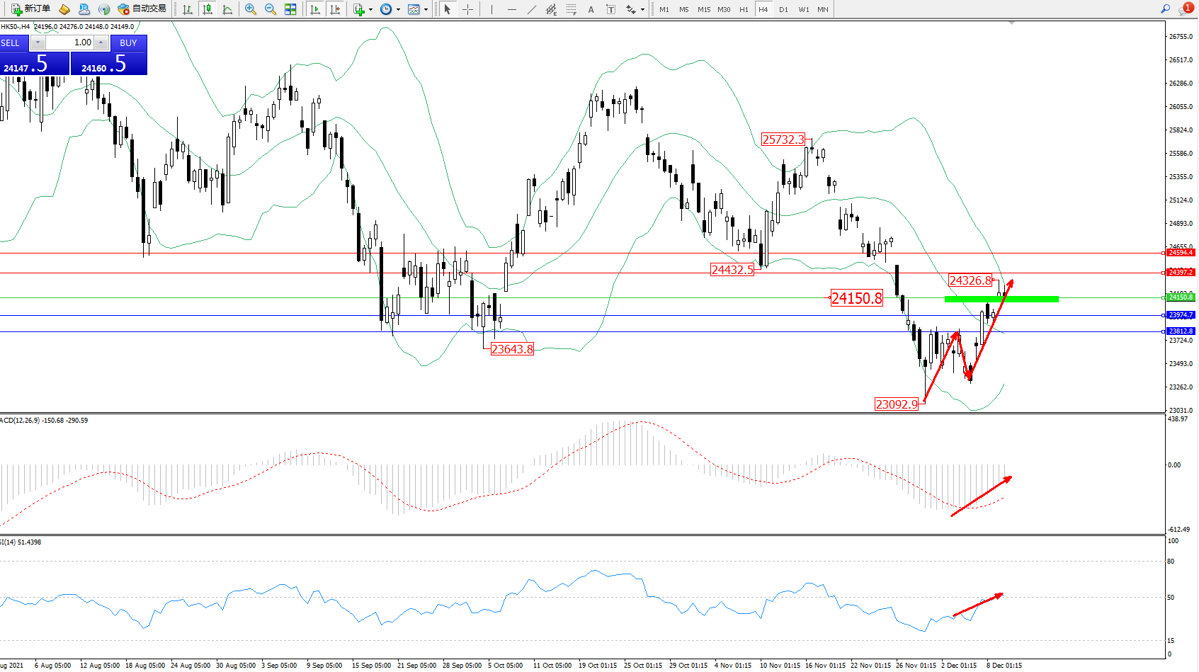 恒指HK50 ——4小时K线图显示: