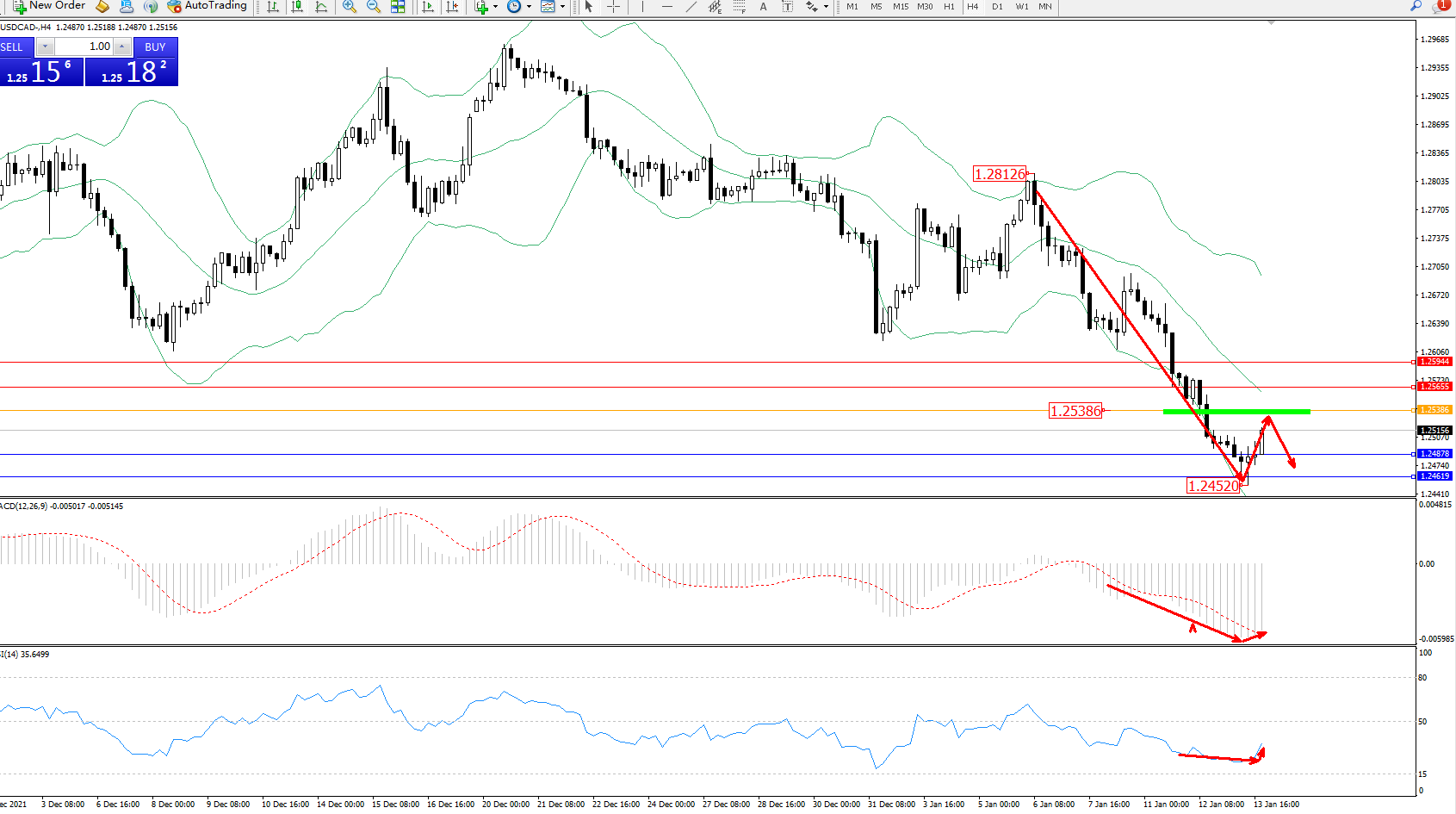 美元加元USDCAD——4小时K线图显示: