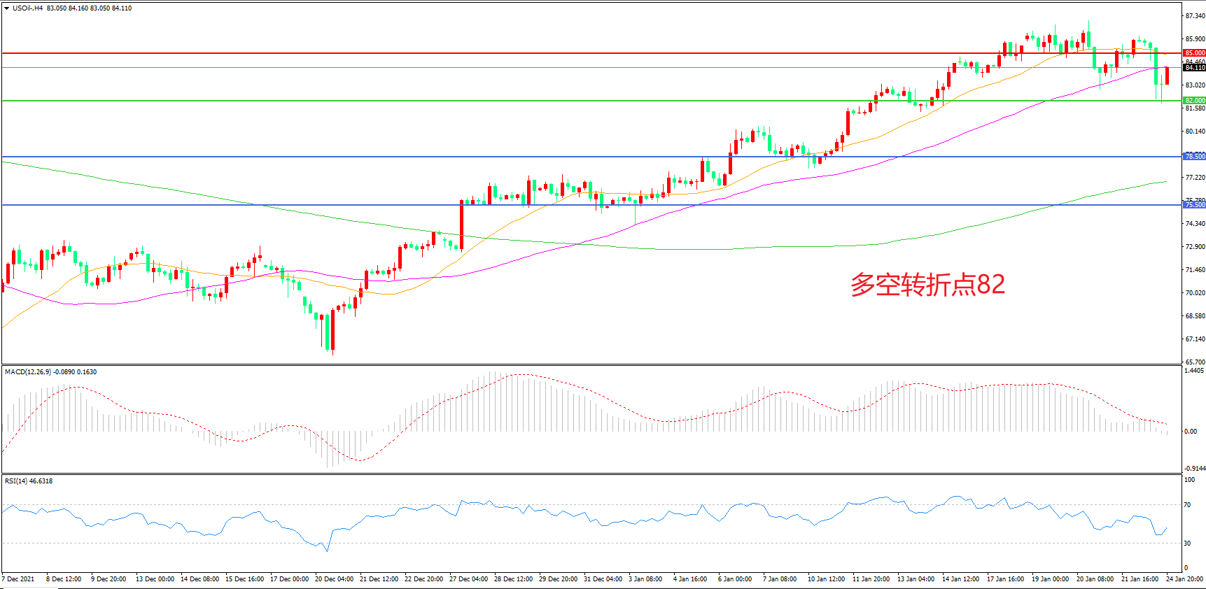 多空转折点:82.00