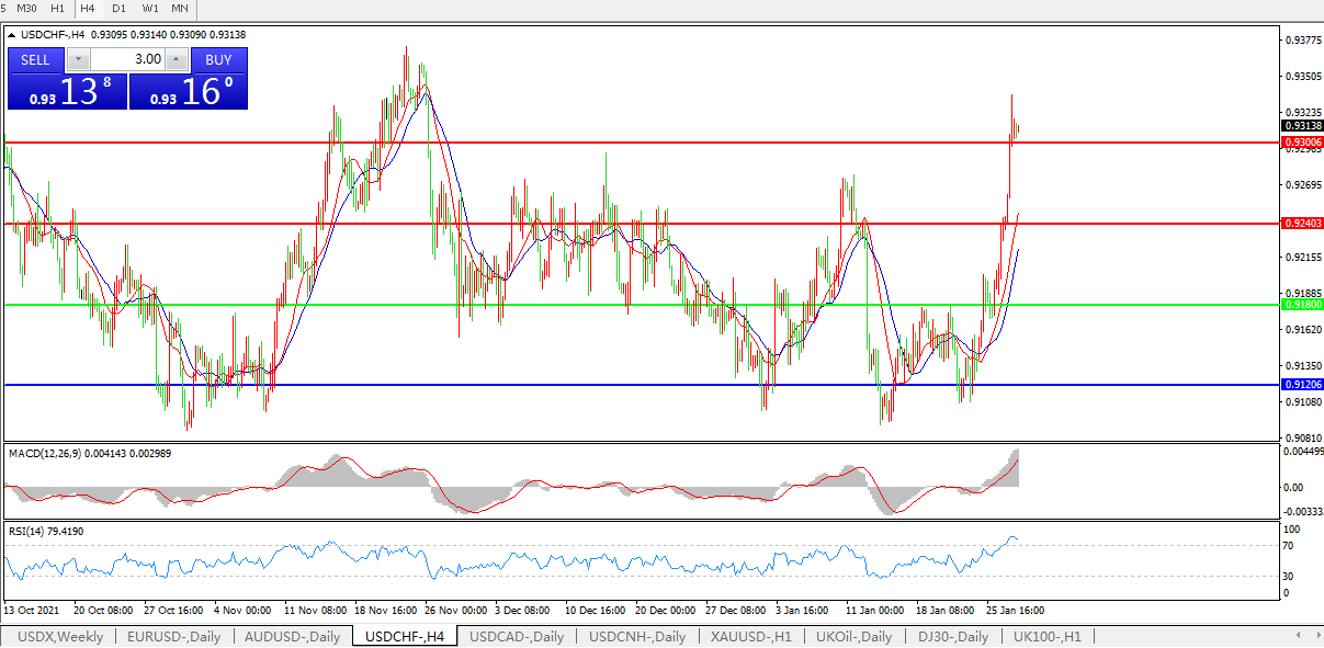 美元兑瑞郎USDCHF 4小时图: