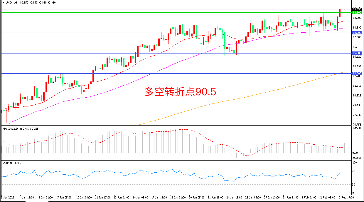 交易策略:在90.50之上看涨,目标93.00                96.00