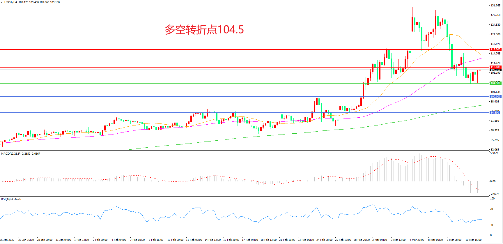 交易策略:在104.50之上看涨,目标110.00 116.00