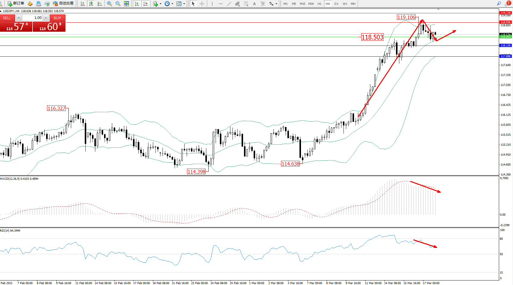 美元兑日圆维持118.574附近震荡,日本央行今日周五可能会保持其货币政策不变。两个因素正在改变经济增长和通货膨胀的动态——俄罗斯-乌克兰战争的影响和延长的疫情限制。面对这些风险日本央行的评估和它可能的应对方式。其政策正常化的时机已经进一步转向未来,比如到2024年。日本1月实施疫情限制措施,并延长至3月21日,这可能使其经济出现萎缩。市场怀疑日本央行会改变路线。 随着长期收益率下降,市场关注的焦点可能会从日本央行的债券购买操作转移到ETF购买上。