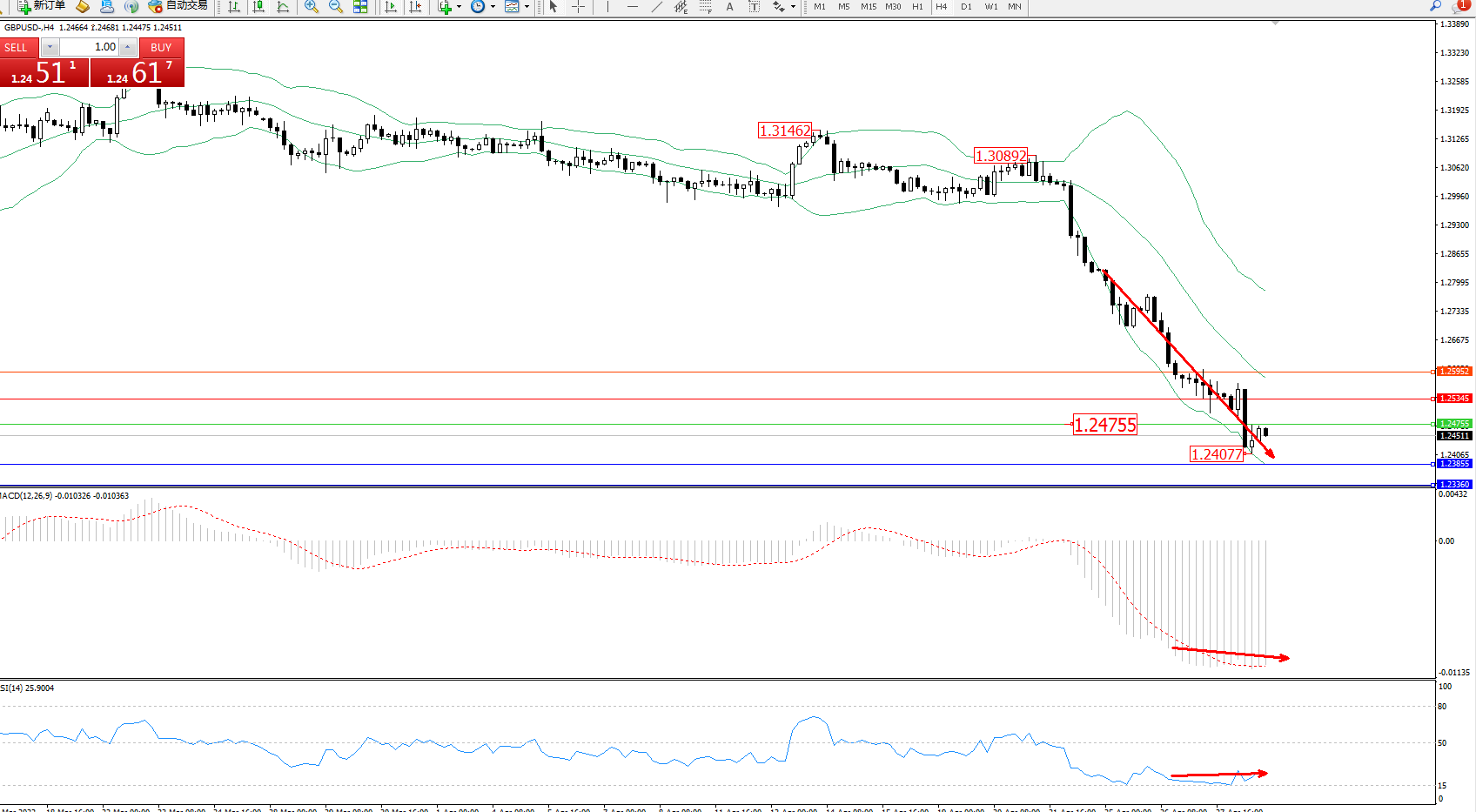 英镑美元GBPUSD ——4小时K线图显示: