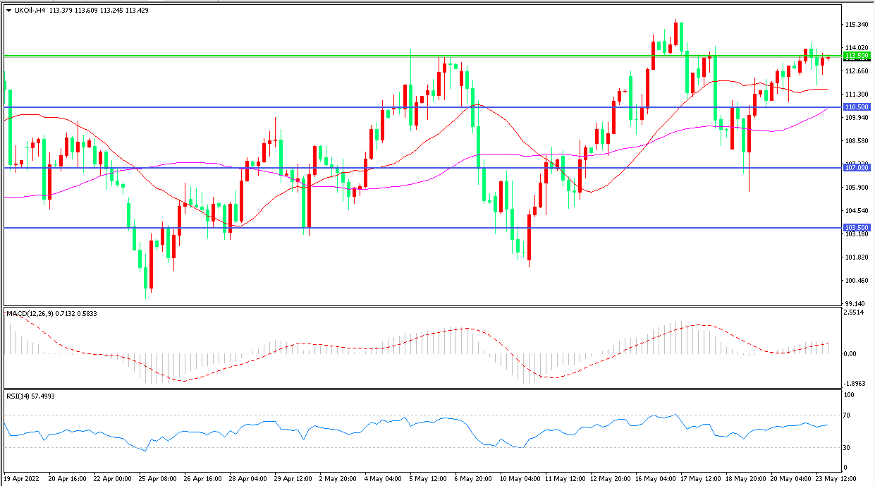 周一(5月23日),美国原油市场需求增加给油价带来一些支持,俄乌冲突博弈加剧等因素也在地缘政治上提供了利多因素,布伦特原油小幅走高,收报113.42美元/桶。随着经济衰退风险临近,供应因素变化增多,油价的高位震荡局势还是很难撼动,但油价短线回调可能在增加,市场无序波动行情较,注意回避风险。