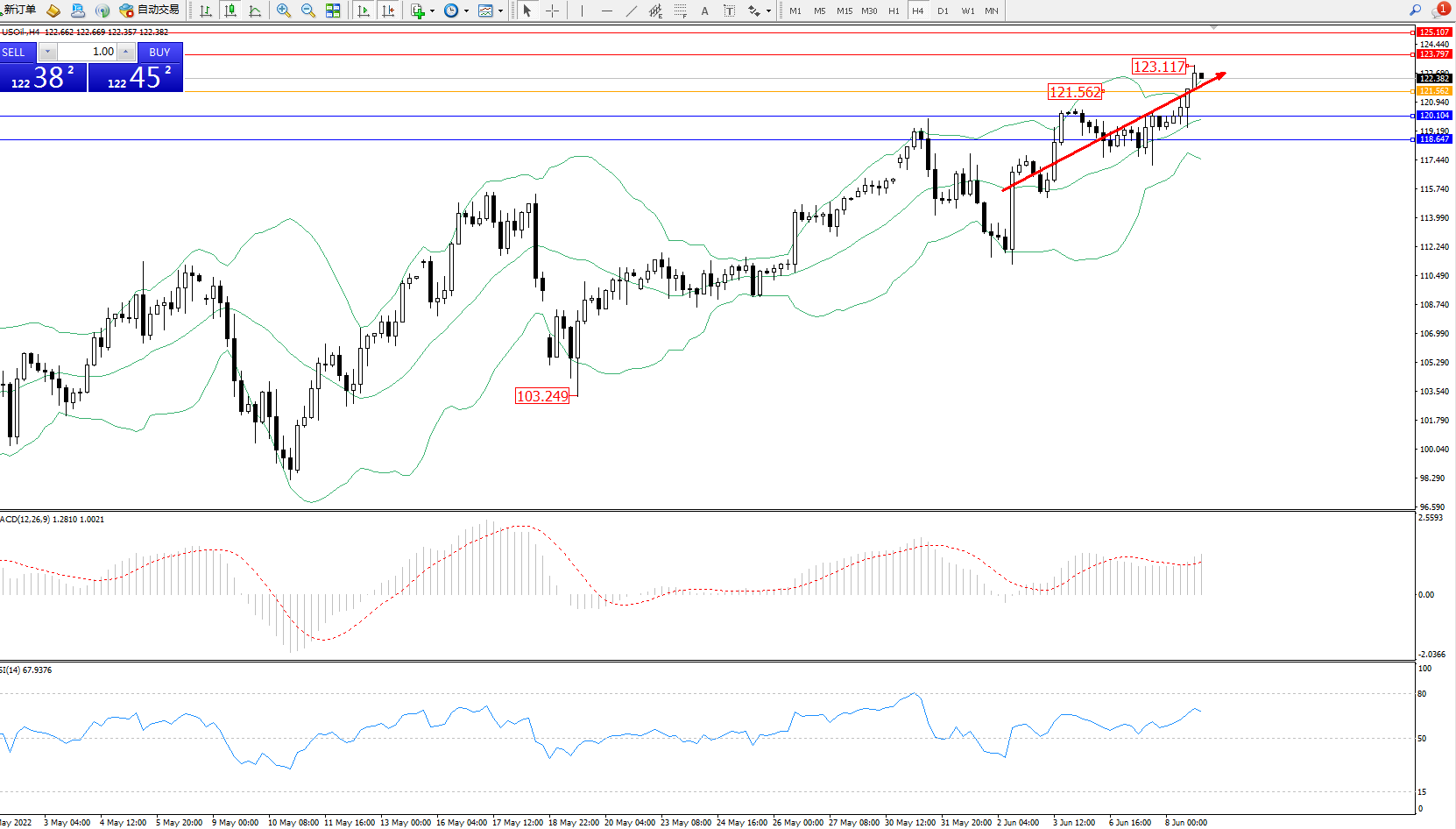 原油USOil——4小时K线图显示: