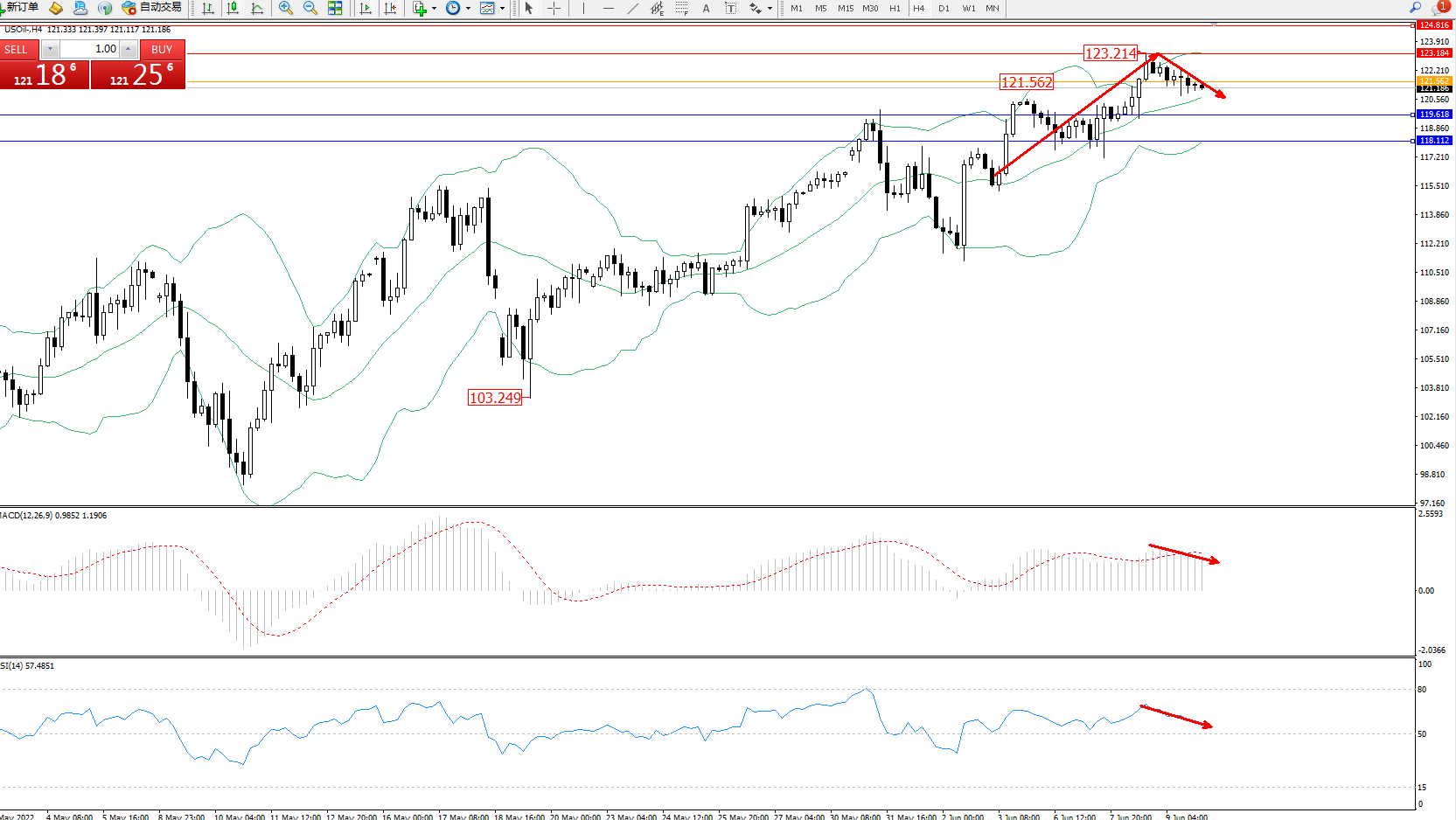 原油USOil——4小时K线图显示:
