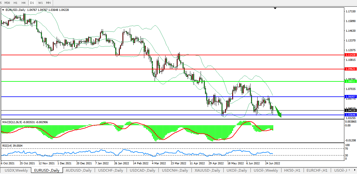 欧元兑美元下跌逾1.2%至1.0423。尽管欧洲央行将在7月启动近十一年来首次加息,以给火热的通胀降温,但相对美联储而言,欧洲央行决策面临较大局限性。