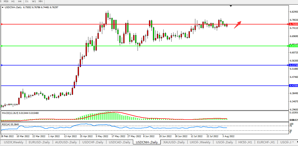 美元人民币USDCNH 日线图: