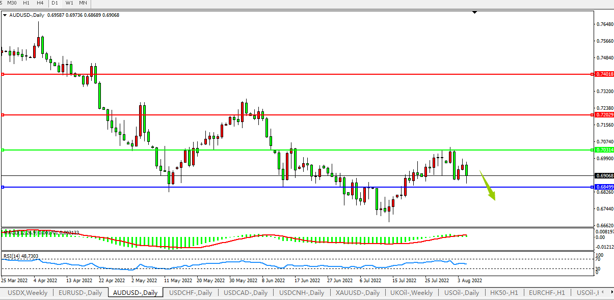 交易策略:0.7030下方看跌,目标0.6850、0.6700