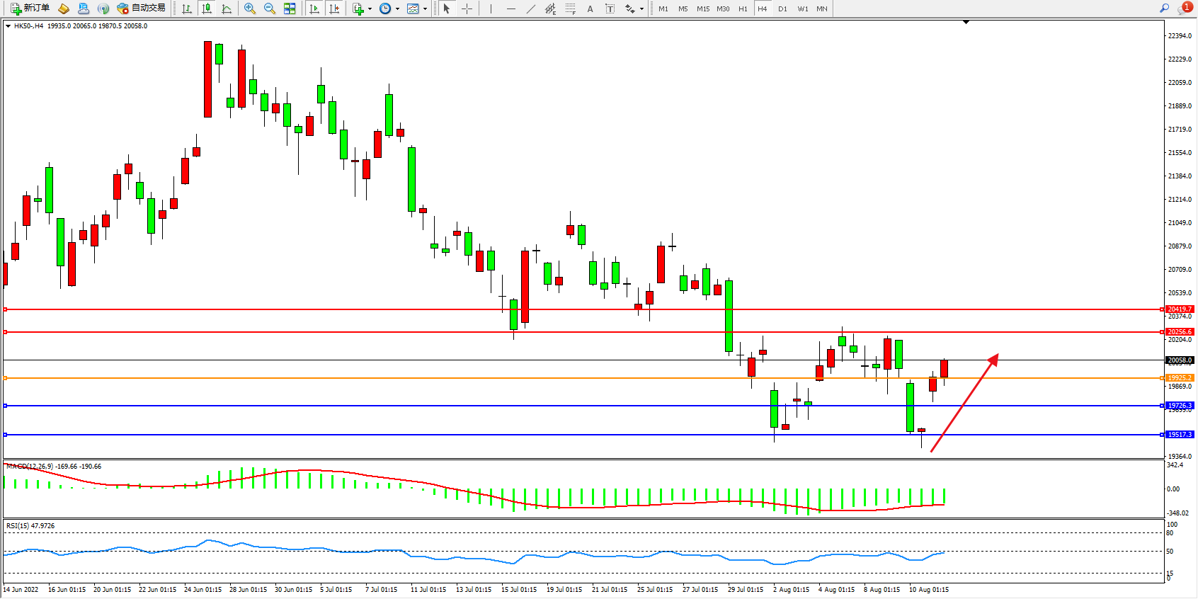 恒指HK50 4小时图