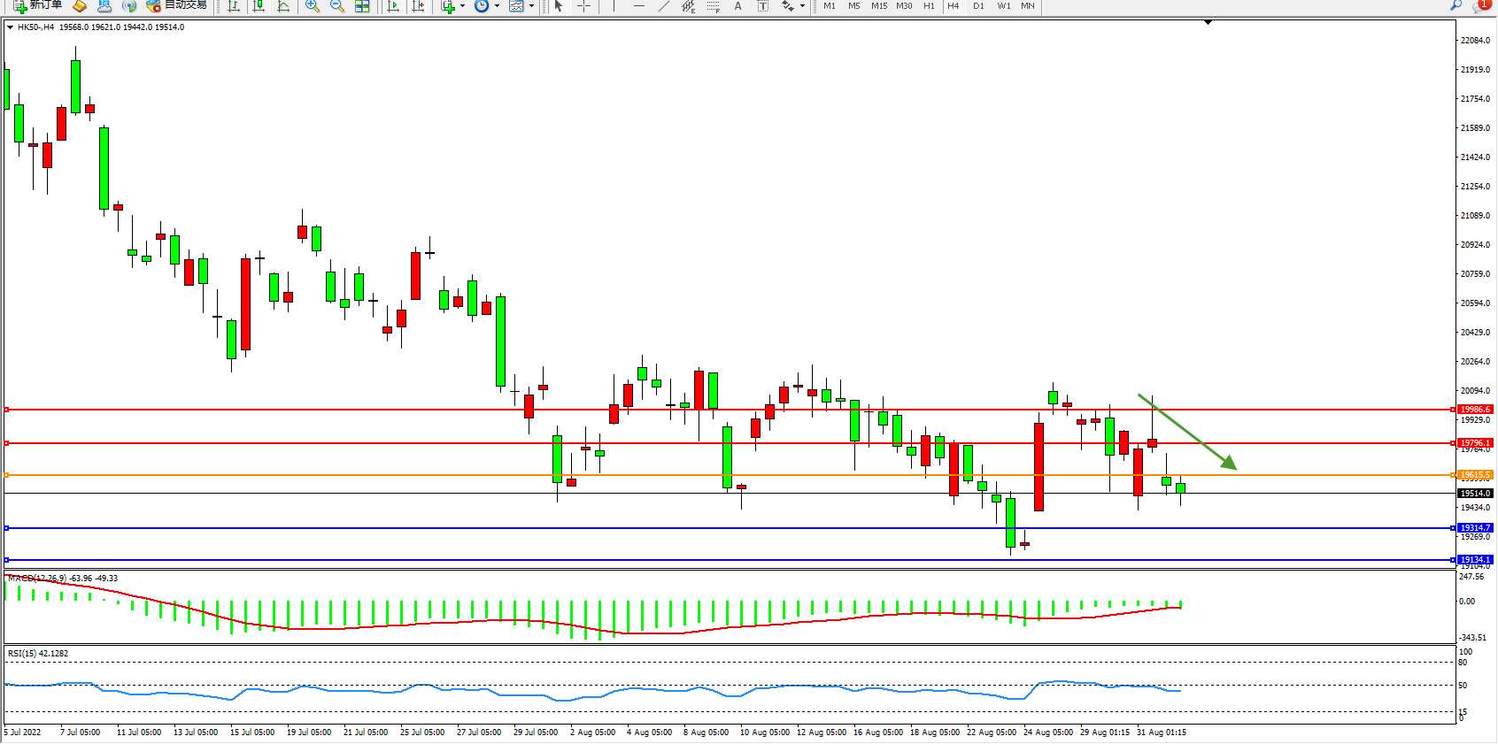恒指HK50 4小时图