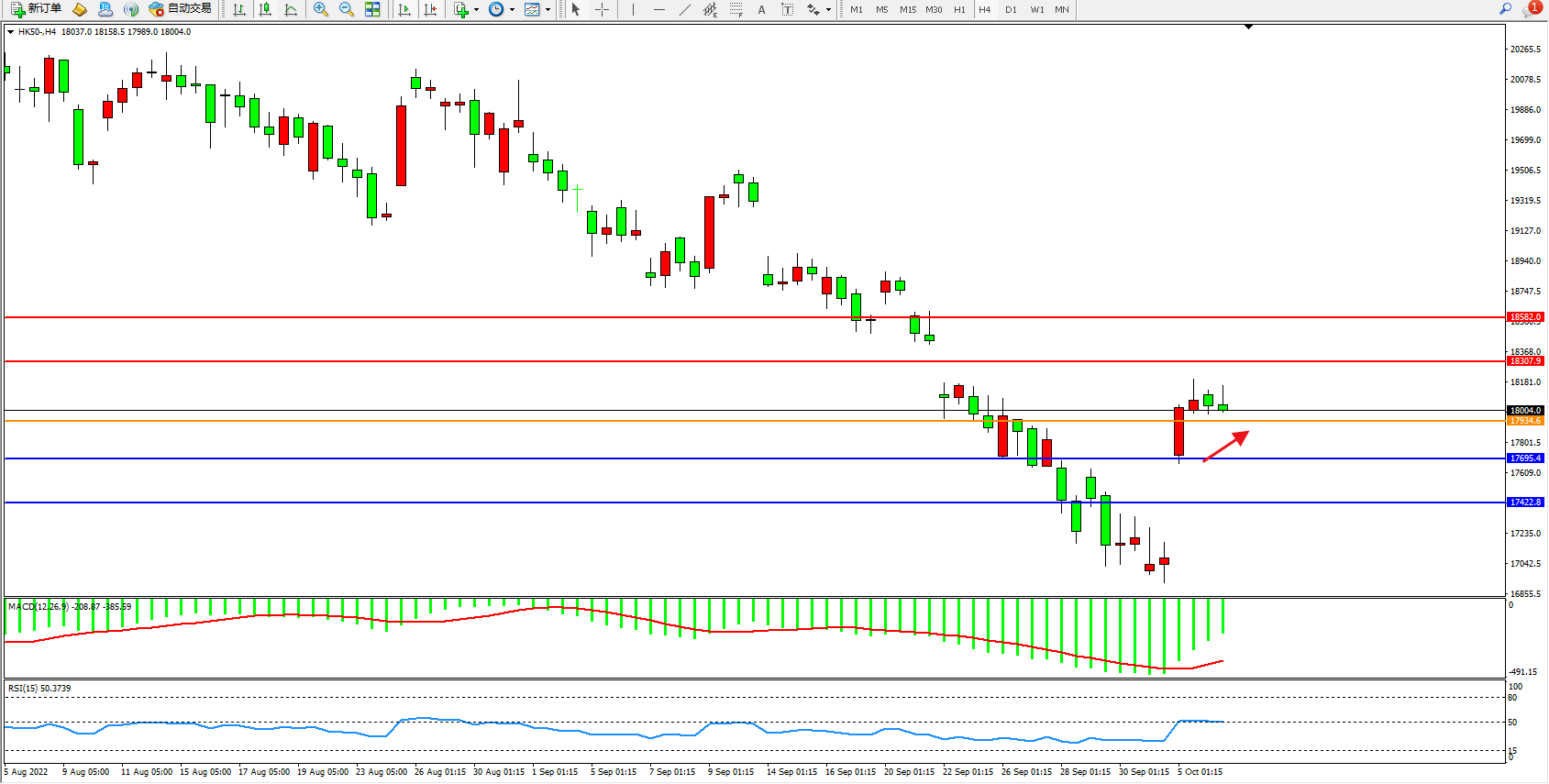 恒指HK50 4小时图