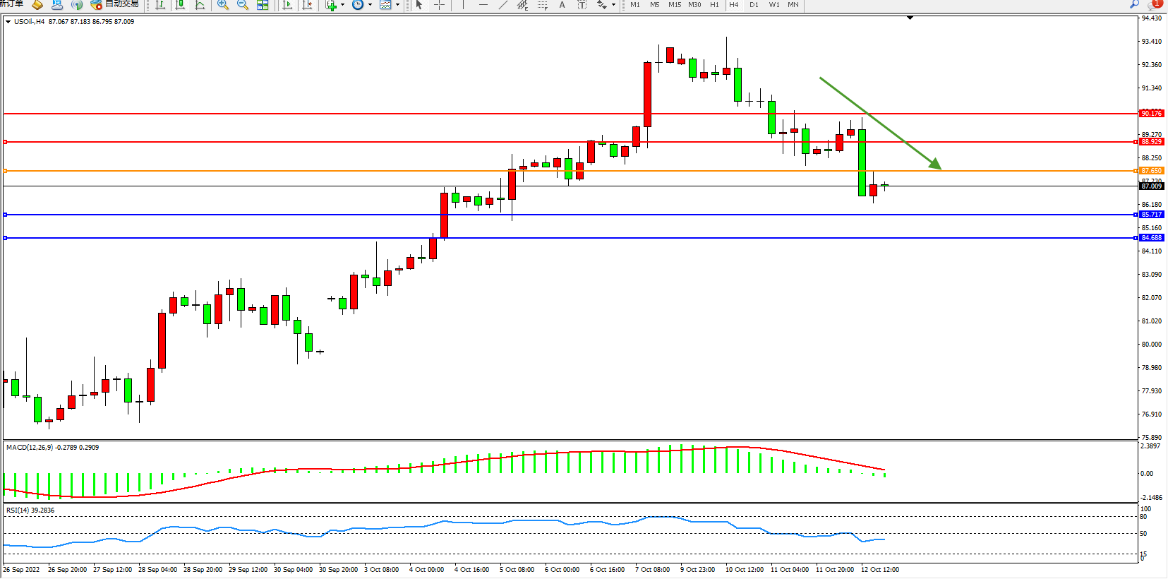 原油维持87.009附近震荡,在11月OPEC+决定每日减产200万桶之后,市场修正了其石油市场平衡,预测2023年石油需求增长为126万桶/天,这意味着比今年年初减少了90万桶/天。