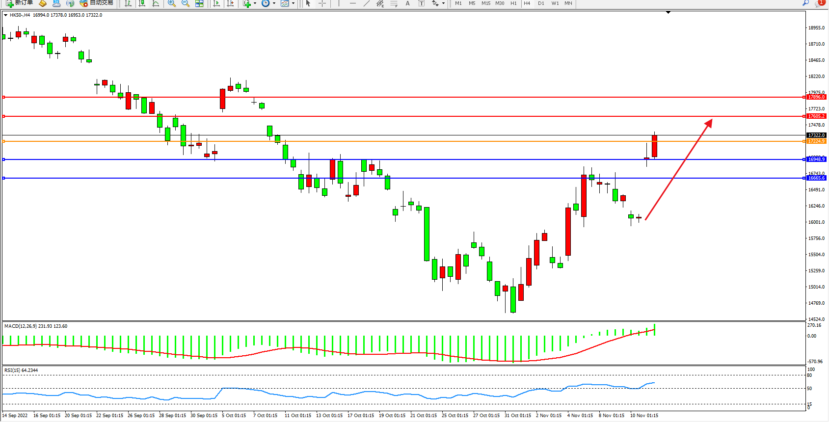 恒指:多头高开拉升