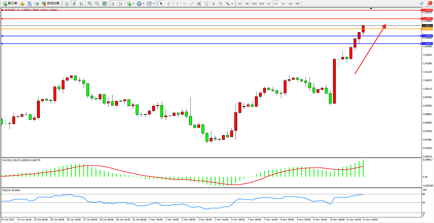4小时图看:多头动力持续攀升,短期看涨情绪依旧,市场多头动力持续上行,MACD指标处于多头区域高位上移,RSI指标处于高位整理;