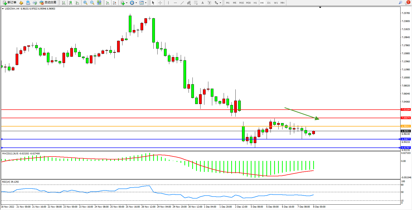 交易策略:6.98043下方看跌,目标6.94877、6.92787