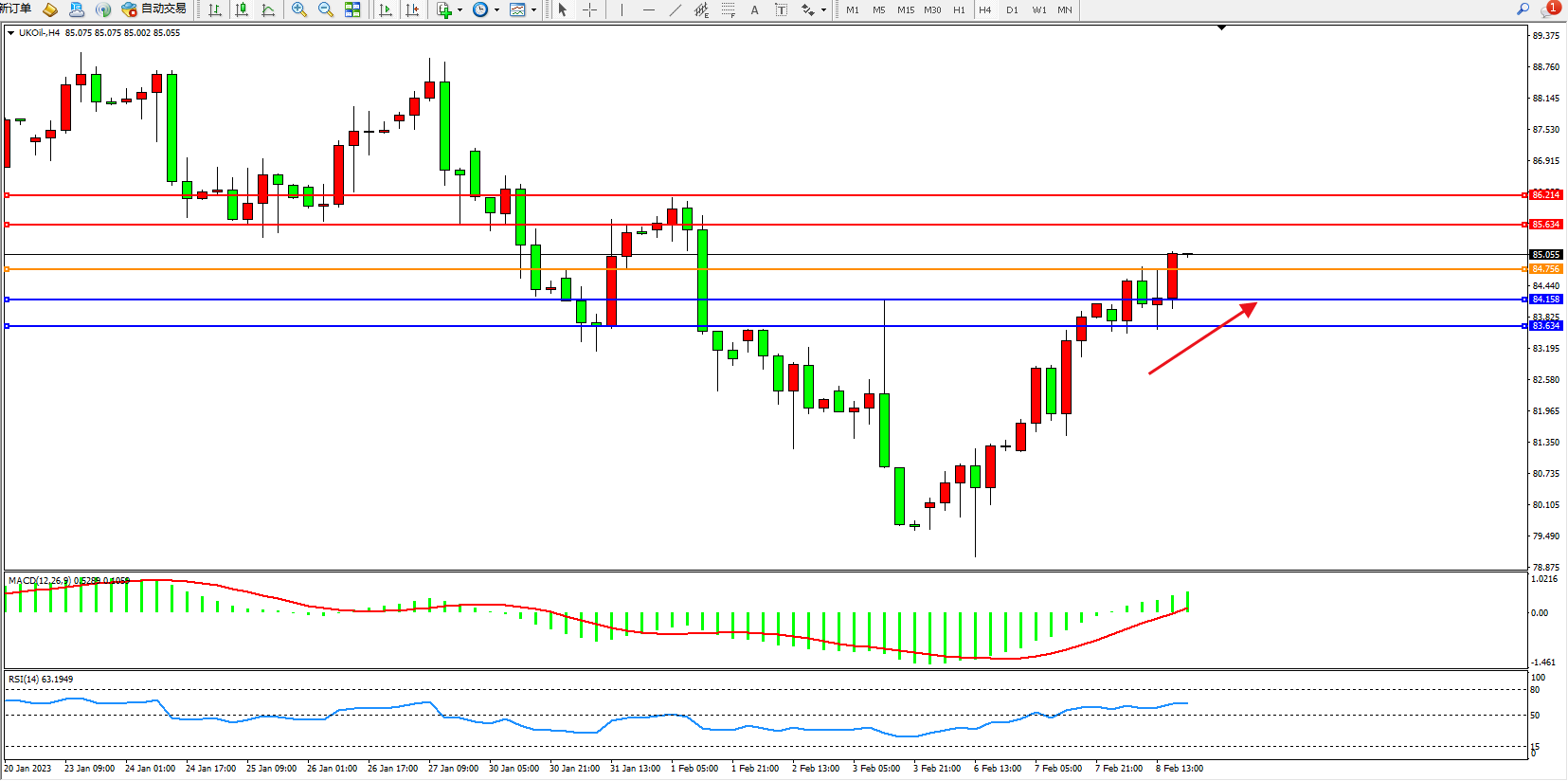 布油UKOil——4小时K线图显示: