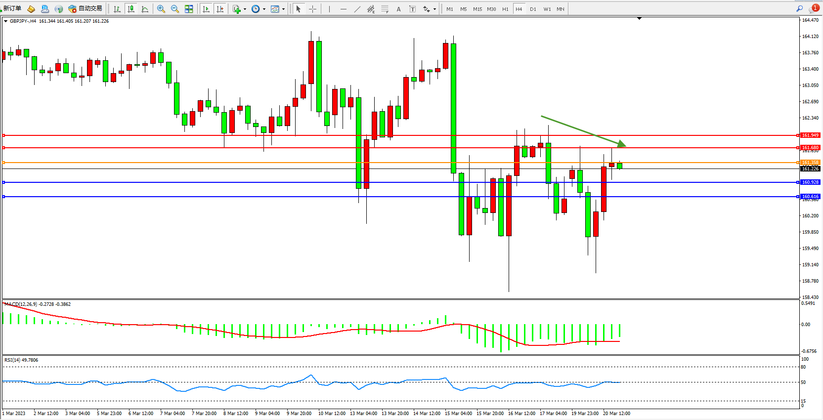 交易策略:161.358下方看跌,目标160.928  160.616