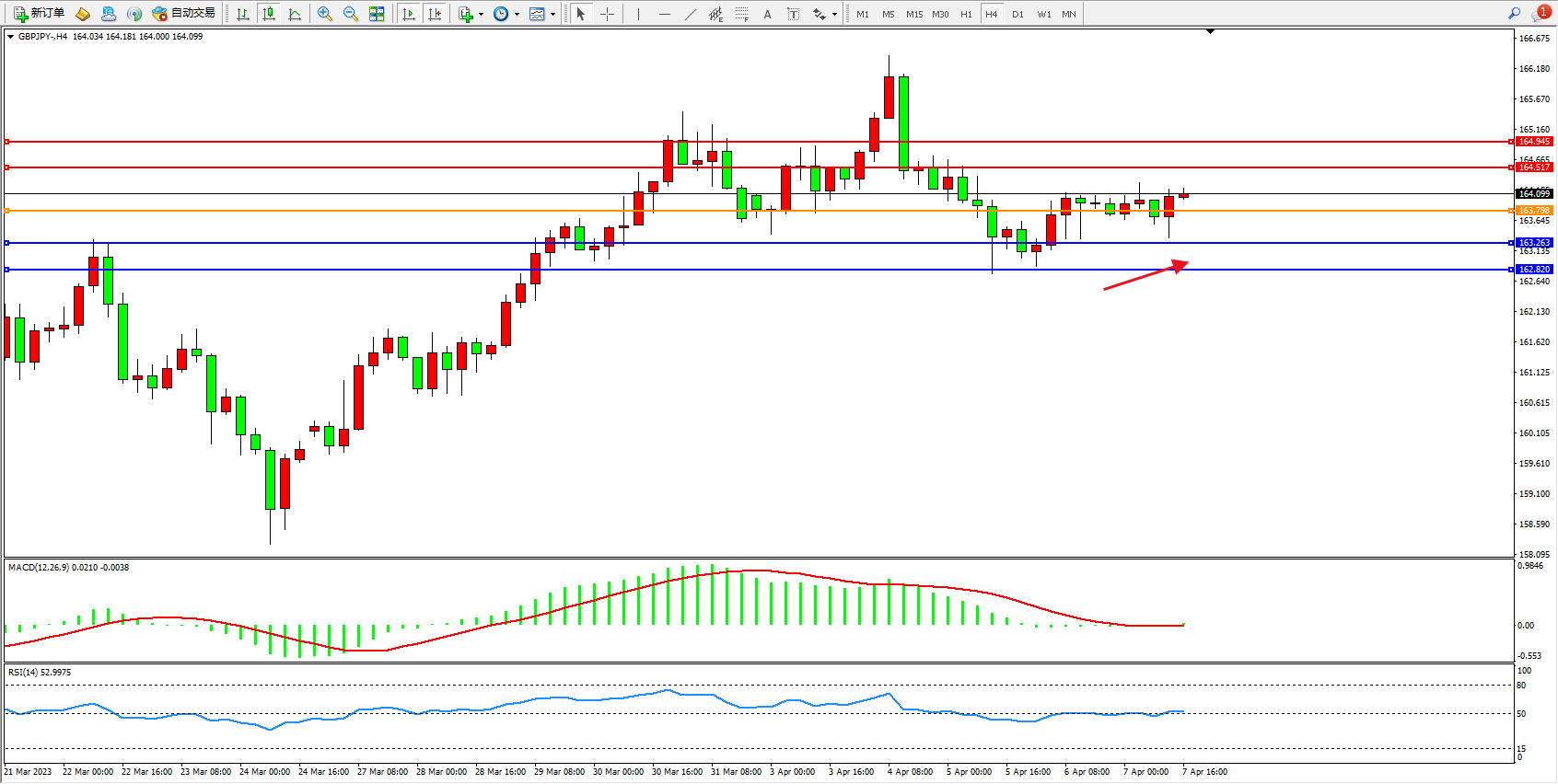 交易策略:163.798上方看涨,目标164.517  164.945