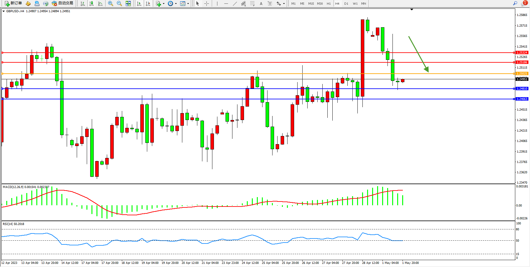 交易策略:1.25025下方看跌,目标1.24810  1.24663