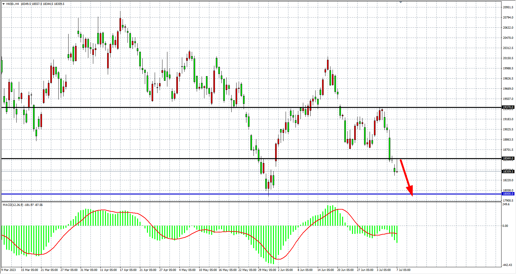 交易策略:18560 下方看跌,目标 18000 17700