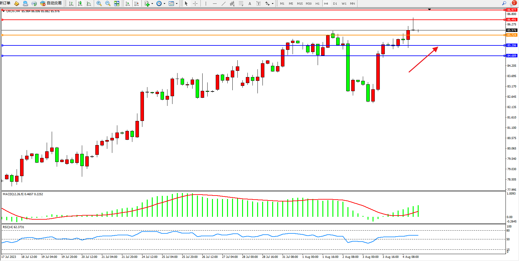 布油UKOil——4小时K线图显示: