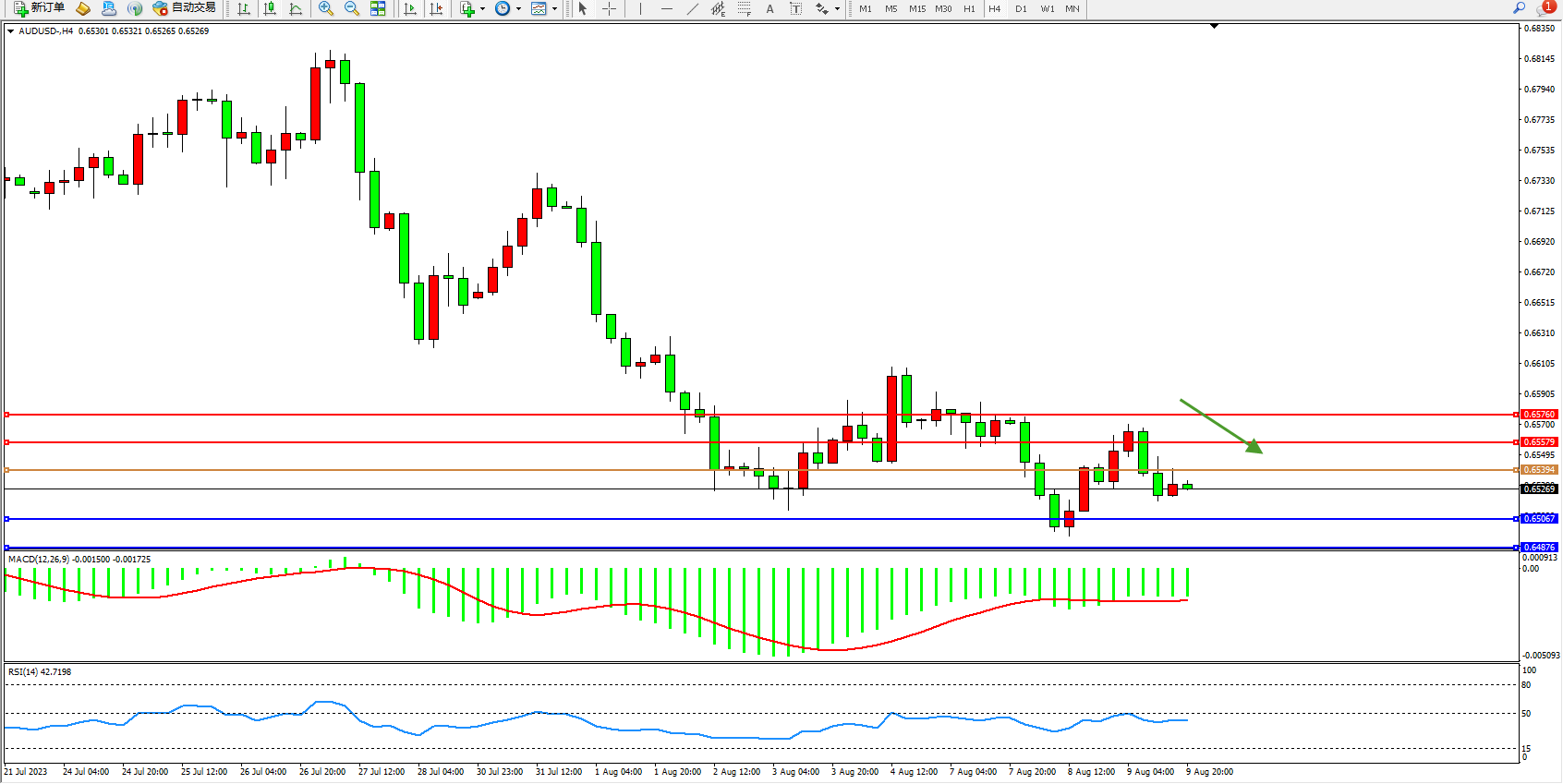 交易策略:0.65394下方看跌,目标0.65067 0.64876
