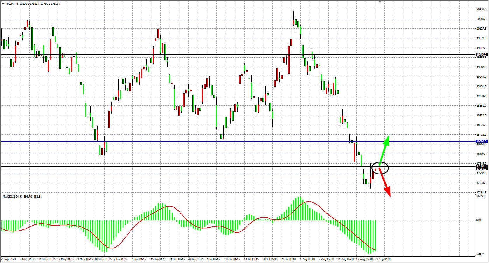 交易策略:17900 下方看跌,目标 17500 17200