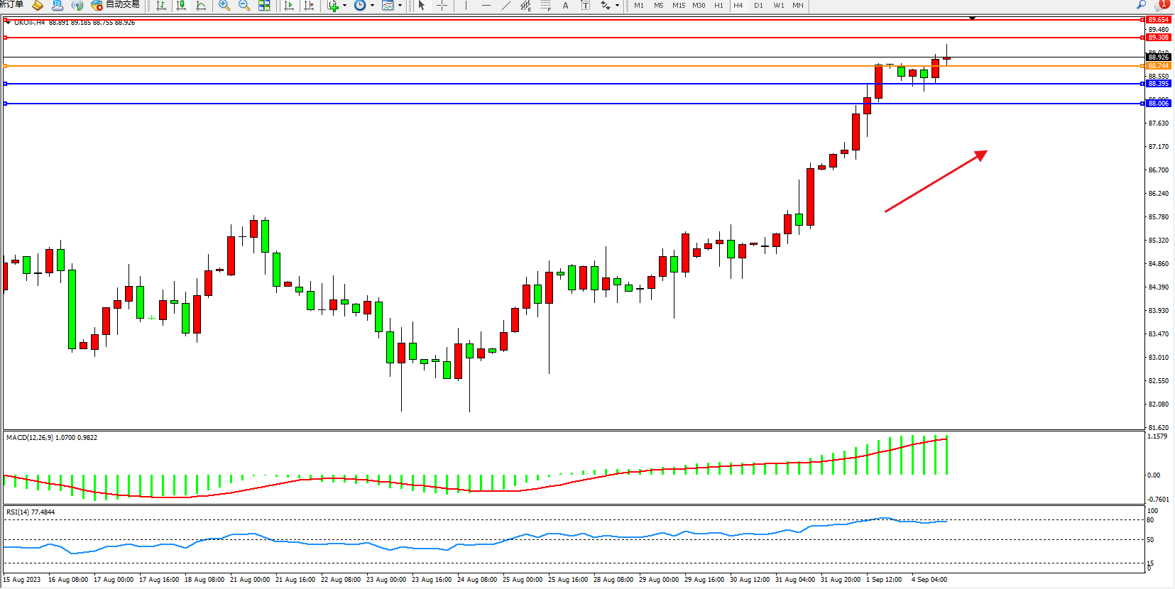布油UKOil——4小时K线图显示: