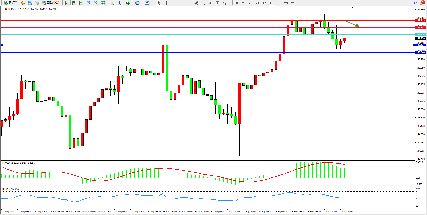 阻力位:147.541  147.719