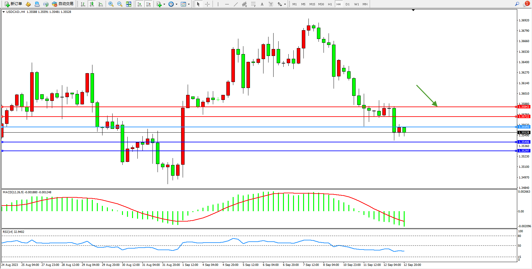 美元加元USDCAD——4小时K线图显示: