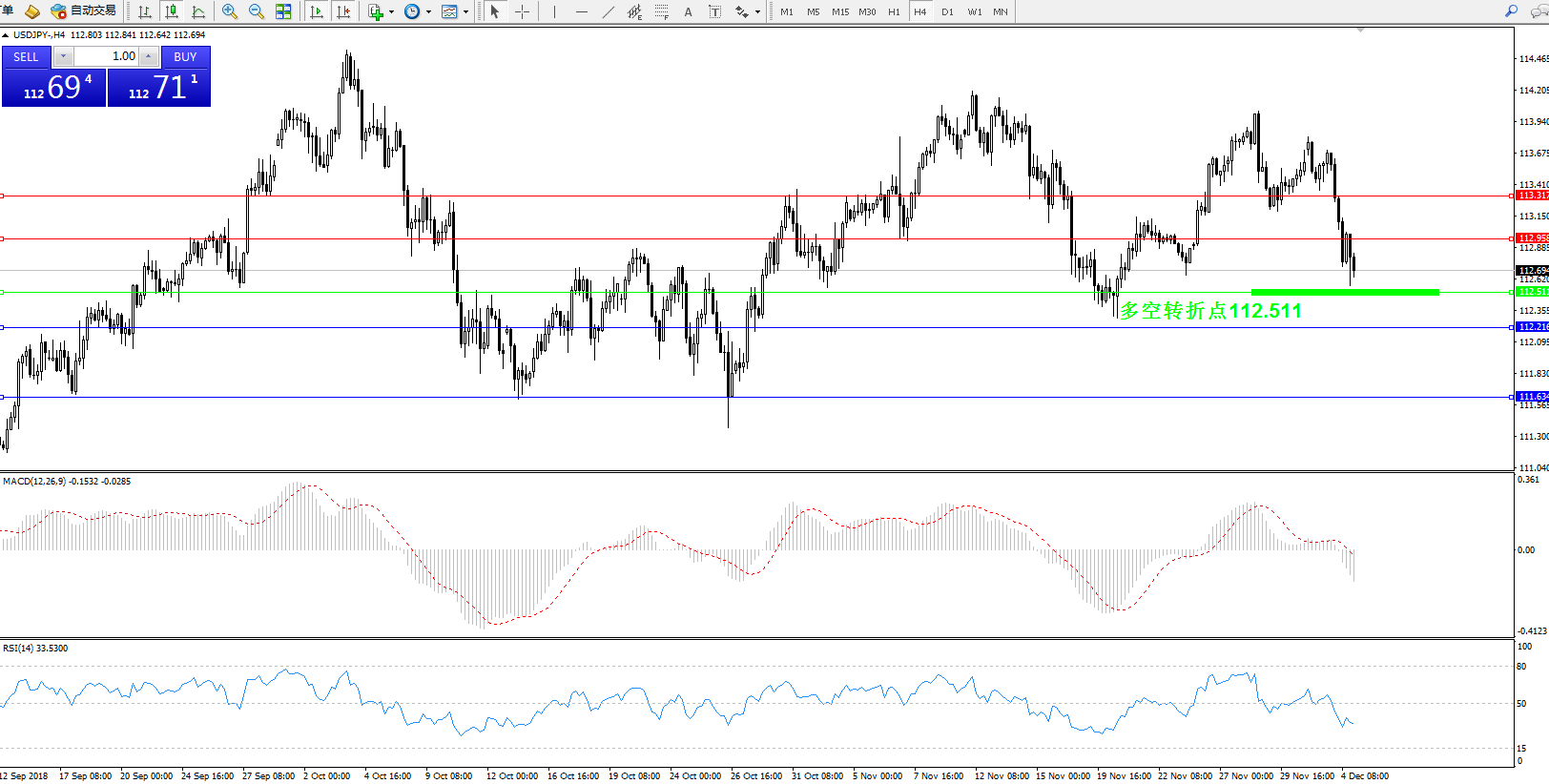 交易策略:112.511上方看涨,目标112.95113.31