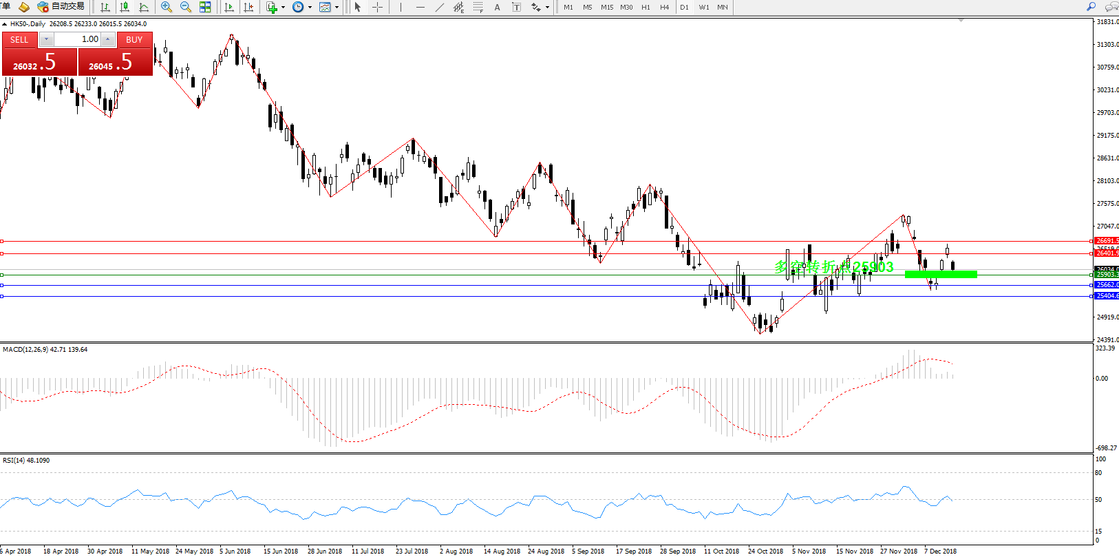 恒指HK50 ——日K线图显示: