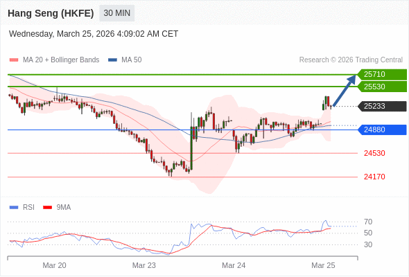 在 24880 之上,看涨,目标价位为 25530 ,然后为 25710 。