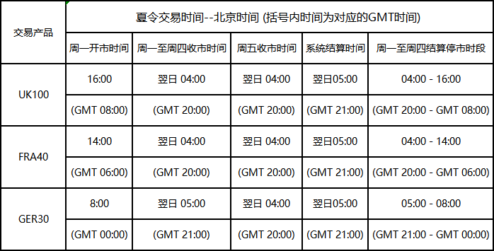 因应欧洲时区于2025年3月30日(周日)开始转为夏令时间, 本公司各产品交易时间将以下表安排调整为夏令时间,敬请留意。