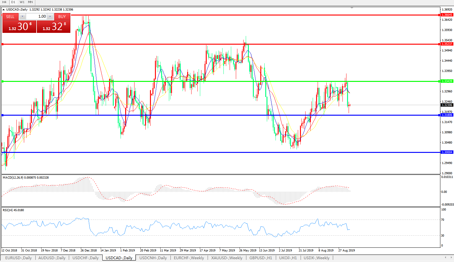 美元兑加元USDCAD    日线