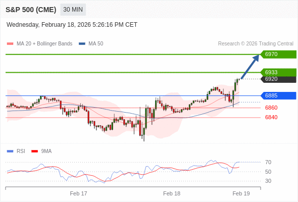 在 6885 之上,看涨,目标价位为 6933 ,然后为 6970 。