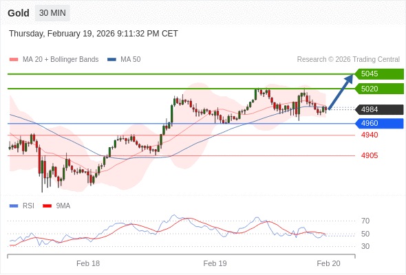 在 4960 之上,看涨,目标价位为 5020 ,然后为 5045 。