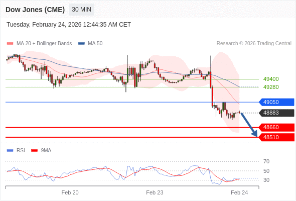 在 49050 之下,看跌,目标价位为 48660 ,然后为 48510 。