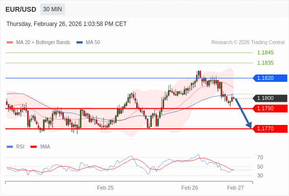 交易策略: 在 1.1820 之下,看跌,目标价位为 1.1790 ,然后为 1.1770 。