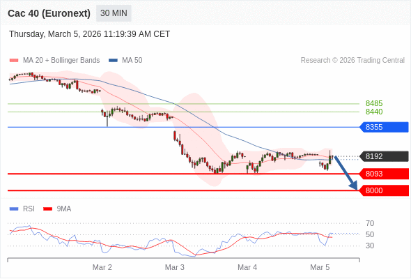 法国CAC指数期货 (Euronext) (H6) 当日内: 谨慎操作。