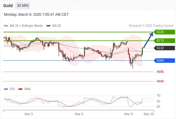 在 5060 之上,看涨,目标价位为 5175 ,然后为 5225 。