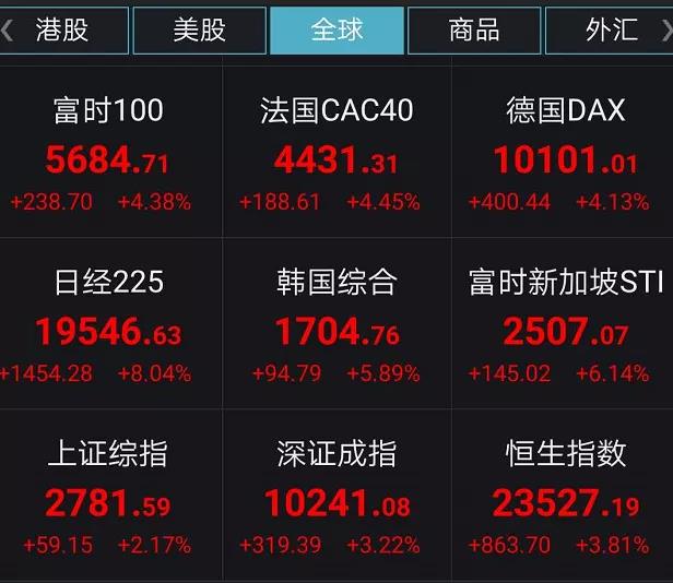 美国超级王炸甩出,也让市场流动性危机得到了缓解,全球股市集体进入狂欢时刻。
