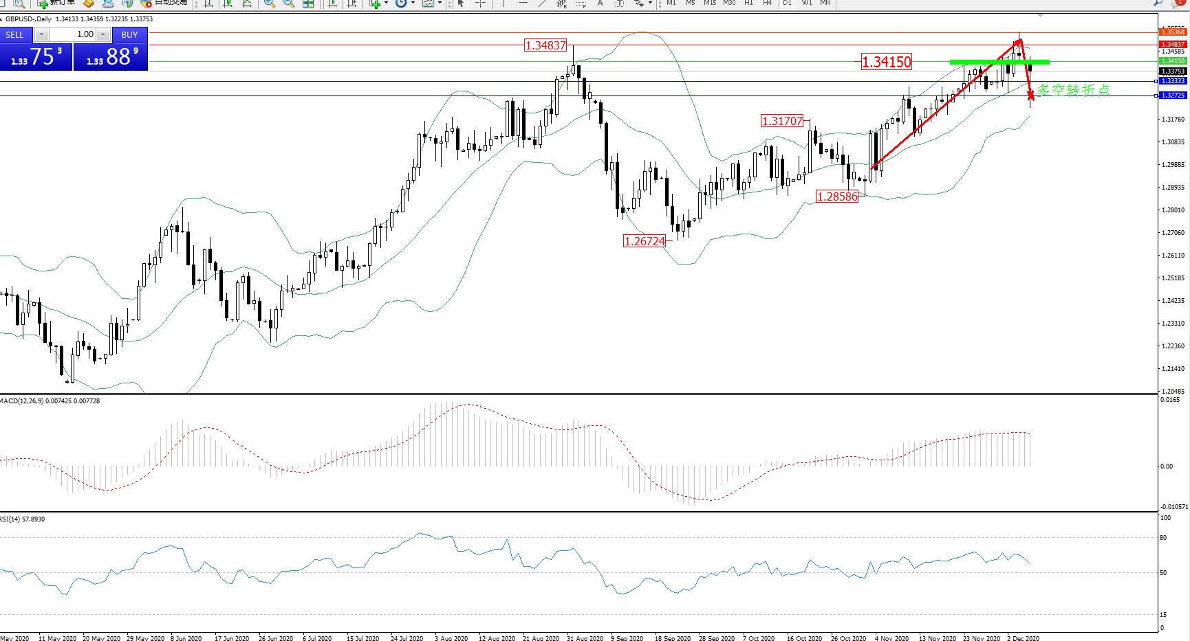 备选策略:1.34150上方看涨,目标1.34837、1.35368