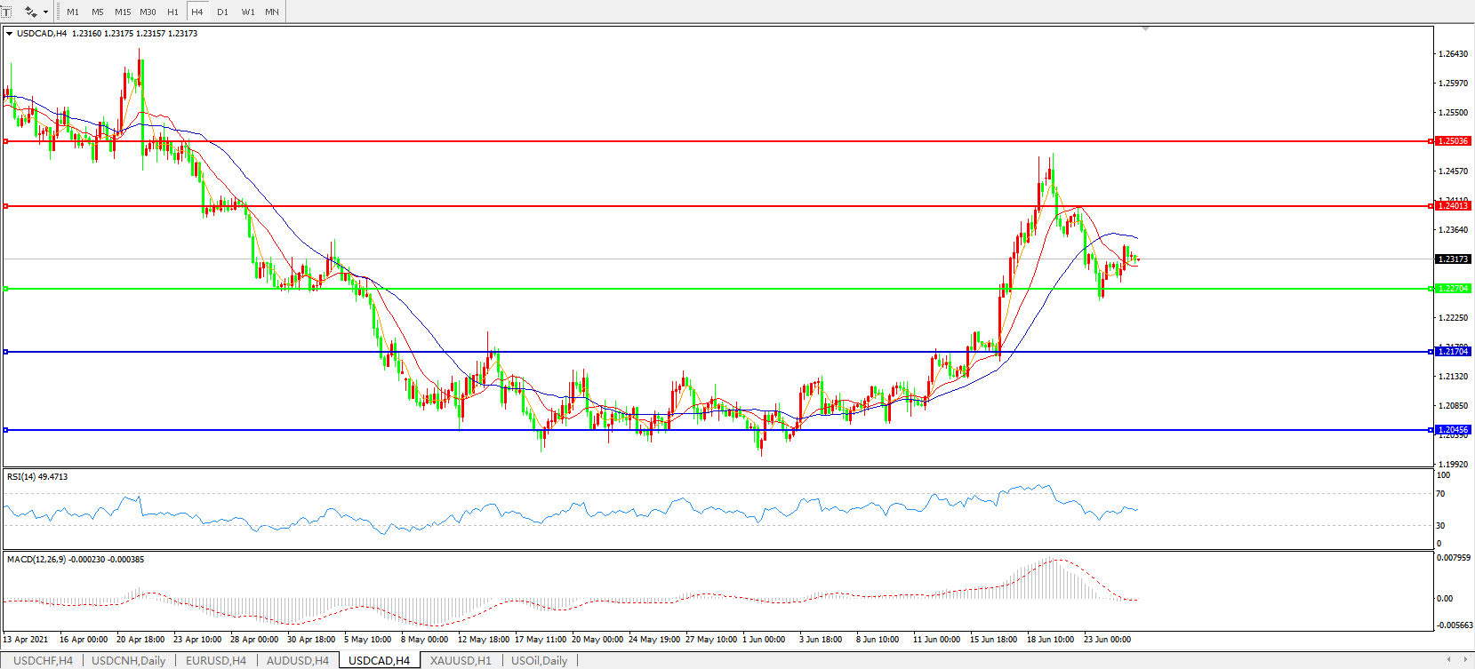 美元兑加元USDCAD 4小时图: