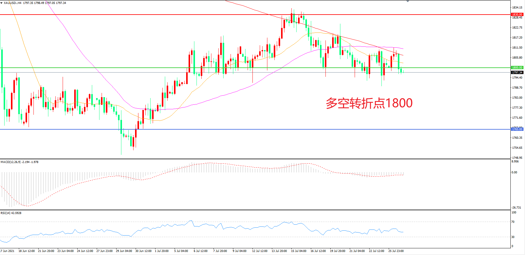 交易策略:  在1800.00之上看涨,目标1840.00        1870.00